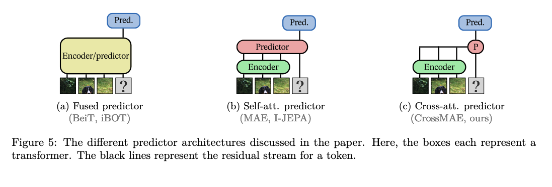 “[…] mask tokens do not interact with each other in the cross-attention mechanism, i.e. each prediction is independent of other positions. This alleviates the need for multiple predictor forward passes with different prediction sets, as used in I-JEPA.”
