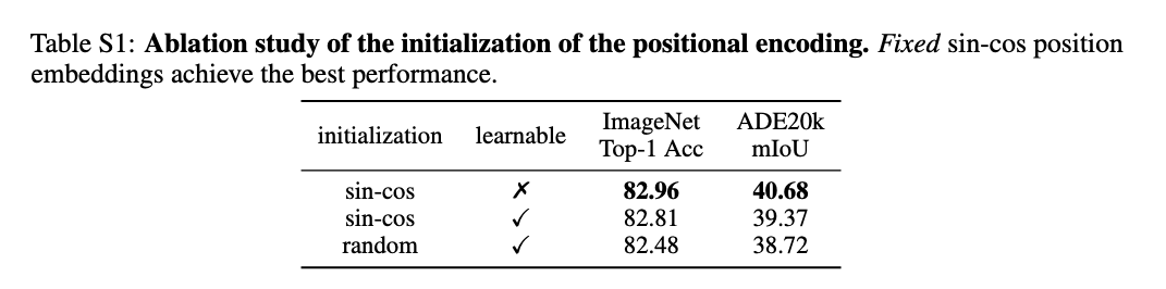 Maybe expected, but fixed position embeddings achieve better performance than learnable position embeddings.
