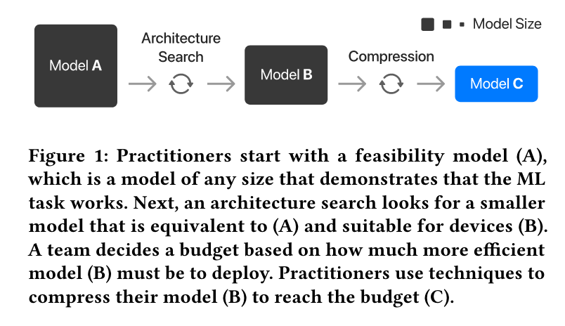 On-device machine learning (ML) promises to improve the privacy, responsiveness, and proliferation of new, intelligent user experiences by moving ML computation onto everyday personal devices. However, today’s large ML models must be drastically compressed to run efficiently on-device, a hurtle that requires deep, yet currently niche expertise. To engage the broader human-centered ML community in on-device ML experiences, we present the results from an interview study with 30 experts at Apple that specialize in producing efficient models. We compile tacit knowledge that experts have developed through practical experience with model compression across different hardware platforms. Our findings offer pragmatic considerations missing from prior work, covering the design process, trade-offs, and technical strategies that go into creating efficient models. Finally, we distill design recommendations for tooling to help ease the difficulty of this work and bring on-device ML into to more widespread practice.